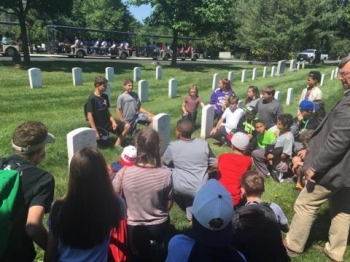 The class (below) helped two brothers find their great grandfather's grave at Arlington National Cemetary. He was a WWI Veteran.