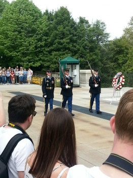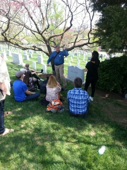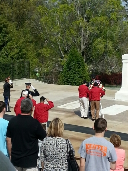 This particular day Bernie led the group around Arlington National Cemetery. The somberness of the day was underscored because it coincided with Good Friday, the day we remember when our Lord was hung on the tree for our sins. One of the many stops in the cemetery was the Tomb of the Unknown Soldier. The message there was powerful and moving. There were a large group of WWII vets in attendance at the time we were there, and their minimum age was 90. They sat in rows of wheelchairs, each with an assistant, and it brought tears to watch them with hand over heart, as they watched the wreath being presented and the guard changed. Four of them stood and participated with the wreath laying ceremony. These men had risked it all to fight to keep America free, had seen their friends make the ultimate sacrifice in battle, and then they had returned home to try to resume a normal life sometimes wondering why they were spared while their friends were not. They had seen the horrors of war first hand and survived. It doesn't take much to move from their earthly willingness to lay down their lives, to remember the ultimate sacrifice that Christ made for us on the cross.
